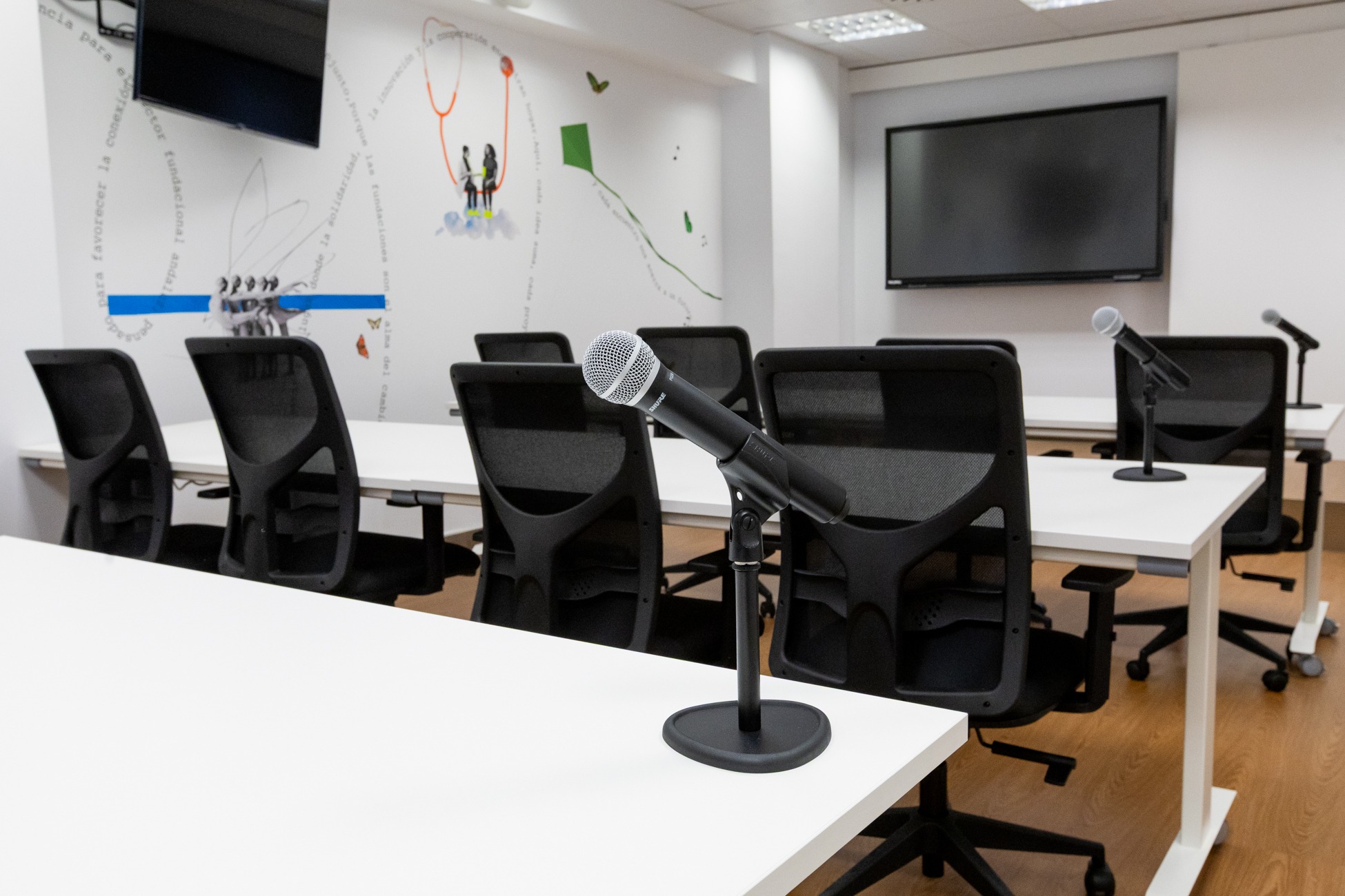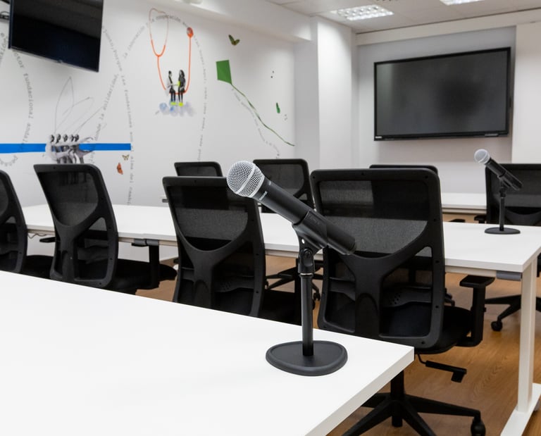 La sala de formación de la Casa de las Fundaciones Andaluzas ofrece el equilibrio perfecto entre ubicación, imagen y funcionalidad, facilitando tanto la formación presencial como híbrida o en streaming.